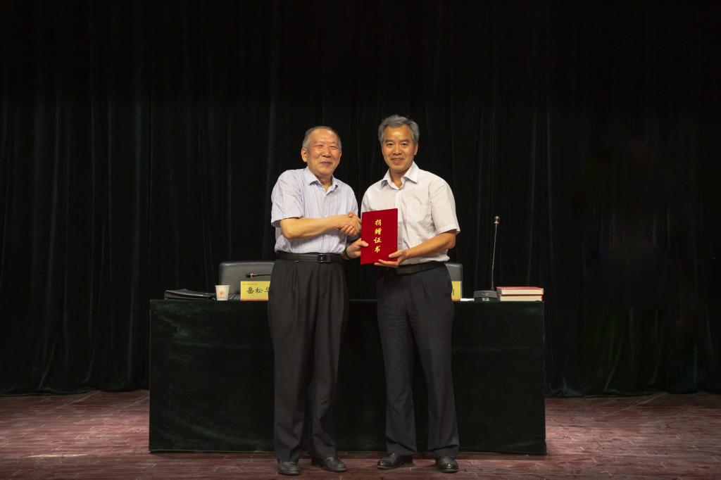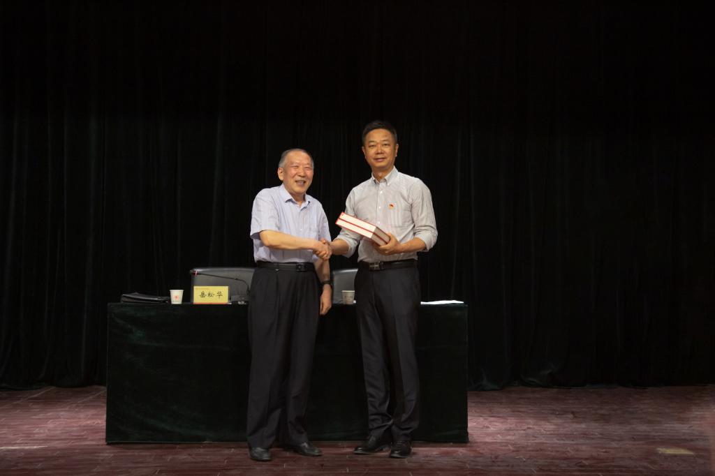 报告会后举行了赠书仪式,岳书记向图书馆捐赠了他撰写的母校校史录《骄子摇篮——株洲航空工业学校光采录》共12套。图书馆相关负责人接受赠书,赵兴刚为其颁发捐赠证书。
