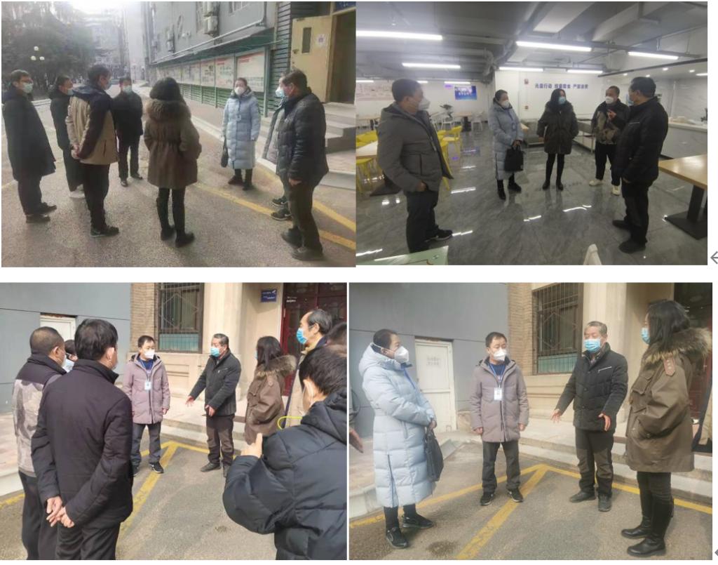 1月10日上午,张家村街道综网中心主任郑萍与张家村街道融信社区党支部书记、社区主任谷永萍一行来sjb世俱杯(院)含光校区检查指导疫情防控工作。