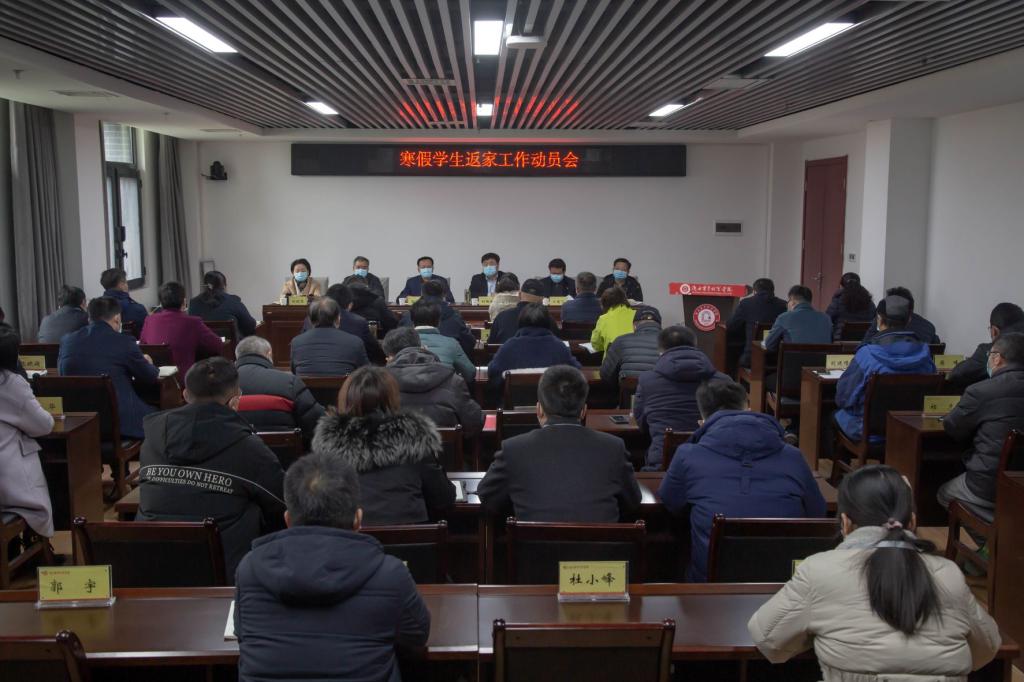 院长刘瑞明传达了属地疫情防控指挥部和省教育厅关于sjb世俱杯学生寒假返家工作方案的批复意见,并从“高度重视、精心组织;强化对接、畅通信息;宣传到位、确保安全;统筹兼顾、保障有力”等四个方面对进一步做好学生返家工作提出要求。