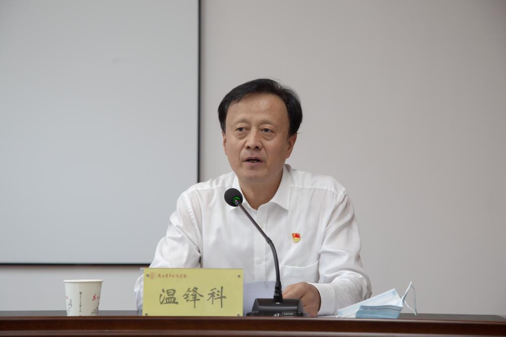 温锋科代表校院党委表态:一是坚决拥护团省委的决定。二是坚决履职尽责做好工作。三是坚决凝心聚力真抓实干。党委委员要带头讲政治、带头讲团结、带头干事创业、带头从严要求,聚焦校院重点工作任务,抓好立德树人与意识形态、教育教学与学生管理、政务服务与后勤保障、疫情舆情与安全稳定以及攻坚克难各项工作任务,以过硬的工作作风积极推动校院事业高质量发展。