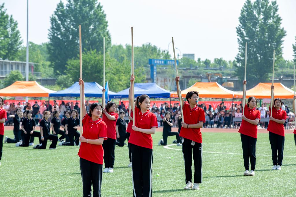 随后,裁判员代表史莎莎与运动员代表王博文分别上台宣誓。在团体操表演环节,各系(部)依次登台,队伍排列或整齐划一、气势震撼,或阵型多变、花样迭出;表演动作或轻盈优雅、灵动柔美,或刚强有力、动感十足,为在场师生送上了洋溢春天气息、充满青春活力的精彩表演,赢得了全场掌声与欢呼声。