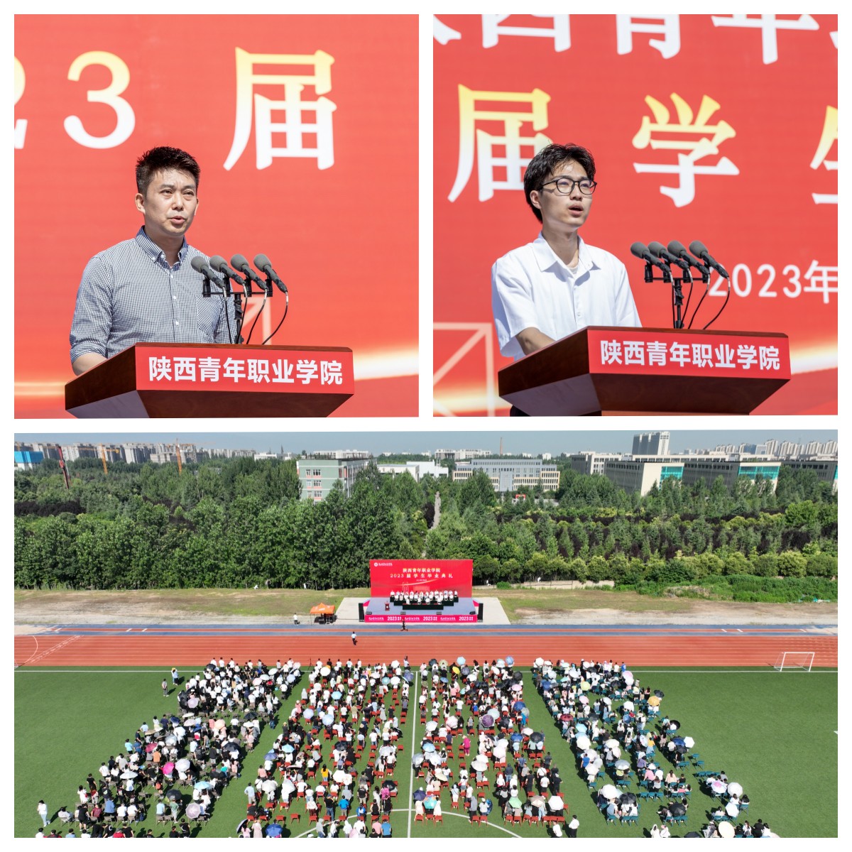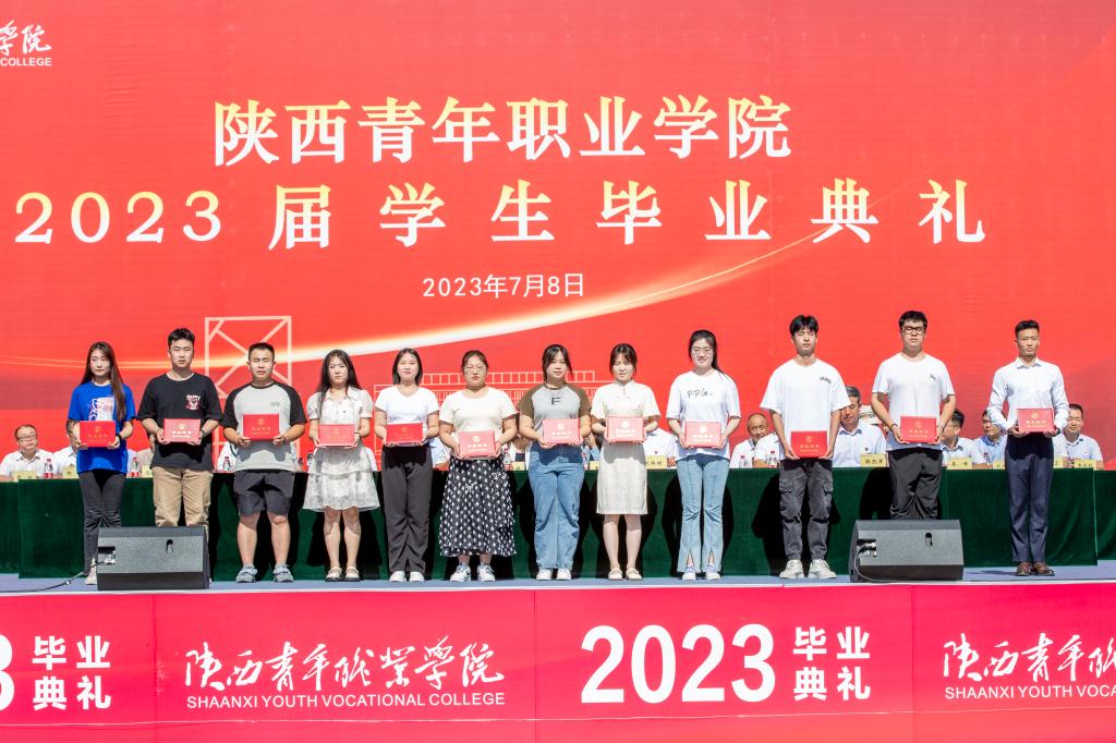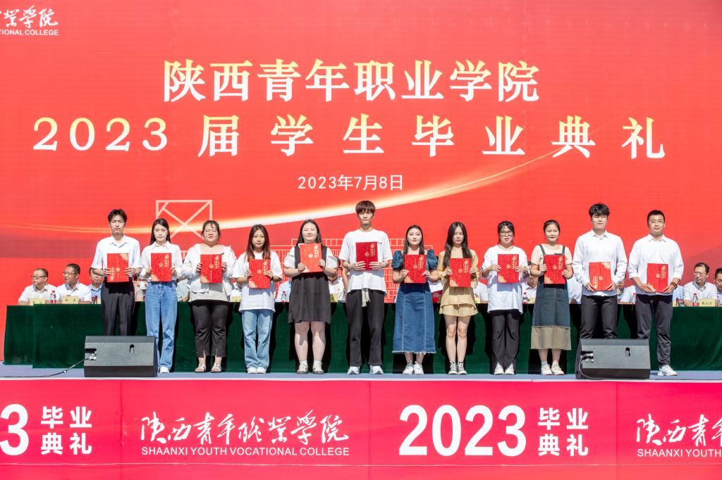 毕业典礼上,学院领导分别向毕业生颁发毕业证书,向2023届优秀毕业生、优秀学生干部、“西部计划”毕业生颁发荣誉证书。毕业生代表、国家奖学金获得者、文化传媒系播音与主持专业2023届毕业生白自豪,教师代表、学前教育系副主任、副教授、陕西省教学名师朱凯利分别发言。