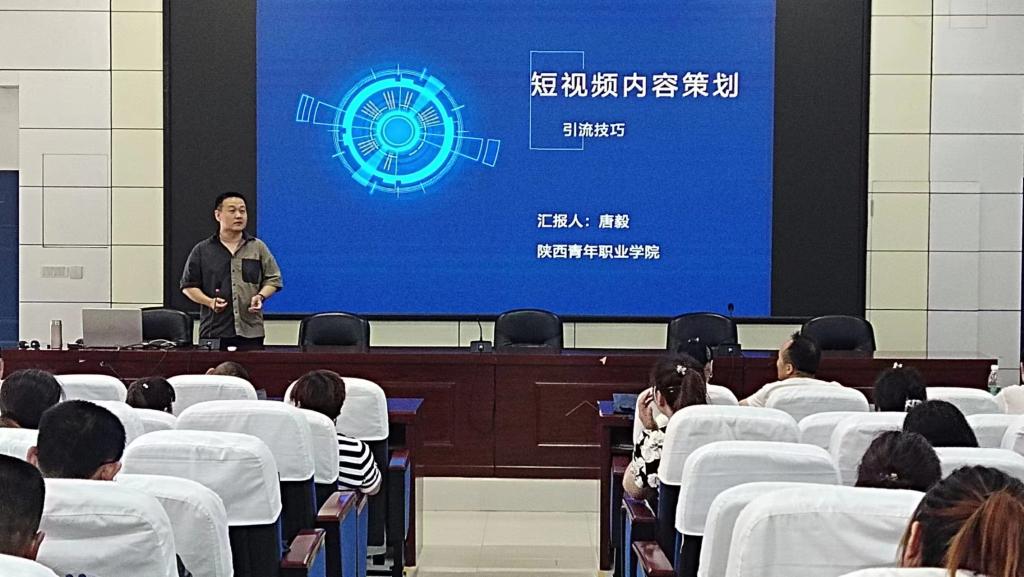 我院对接千阳县教育体育局、千阳县农业农村局组织的关于开展果农网红和营销达人培训需求,王瑜以“巧用新媒体工具,内容运营更高效”为题,通俗易懂地讲解什么是新媒体,怎样使用各类新媒体工具让手机变成“新农具”,实现内容的社会与经济效益,助力乡村经济发展;唐毅以“短视频内容策划引流技巧”为题,通过生动的视频案例和风趣幽默的讲解互动,与学员分享如何制作具有审美需求、生存需求、具有“好奇心、同理心、爱心”的爆款视频。两位老师的讲座受到培训学员一致的欢迎与好评。