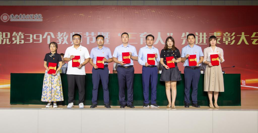 会上,全体新入职教职工进行了庄严宣誓。副校(院)长韩凯军宣读了《关于表彰省级教学名师奖获得者王瑜同志的决定》,党委副书记梁菀华宣读了《关于表彰2021-2023学年“三育人”先进集体、先进个人和命名“三育人”先进集体示范岗、先进个人示范岗的决定》。校(院)领导班子成员为“省级教学名师”、“三育人”先进集体和个人进行了颁奖。省级教学名师王瑜、先进集体代表杨西京、先进个人代表宫丰敏、梁睿、侯鹏等五位同志,代表获奖人员分别结合自己的岗位和工作体会作了交流发言。(工会 供稿)