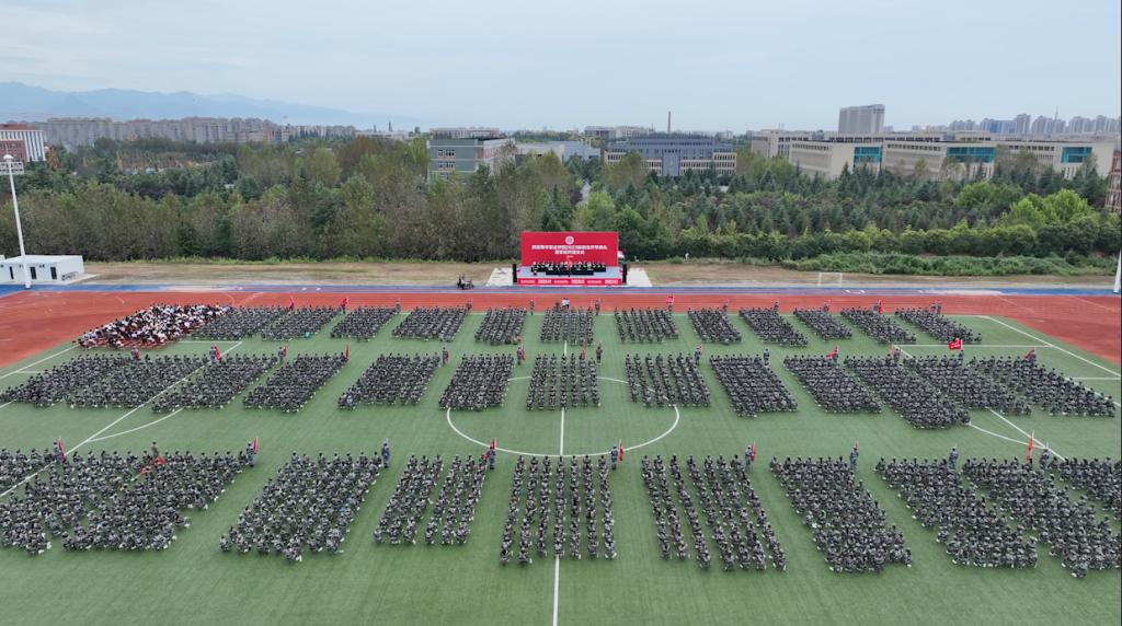 9月12日上午,学院2023级新生开学典礼暨军训开营仪式在长安校区举行。党委书记温锋科、院长刘瑞明、党委副书记梁菀华、西安市碑林区人民武装部部长王茂生上校出席,各系(院)、各部门主要负责人,军训团团长赵明之少校、军训团政委刘国强及各系学生工作负责人在主席台就坐。承训教官、全院教职工及2630名新生参加。大会由副院长韩凯军主持。