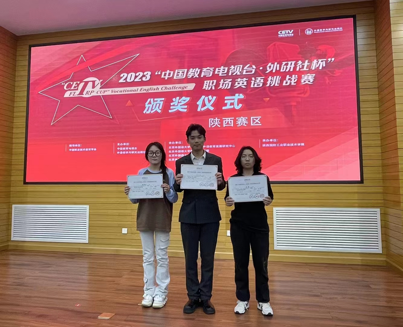 10月29日,由中国教育电视台、陕西省职业技术教育学会、外语教学与研究出版社联合举办的2023“中国教育电视台·外研社杯”职场英语挑战赛陕西赛区比赛在陕西国防工业职业技术学院举行。
