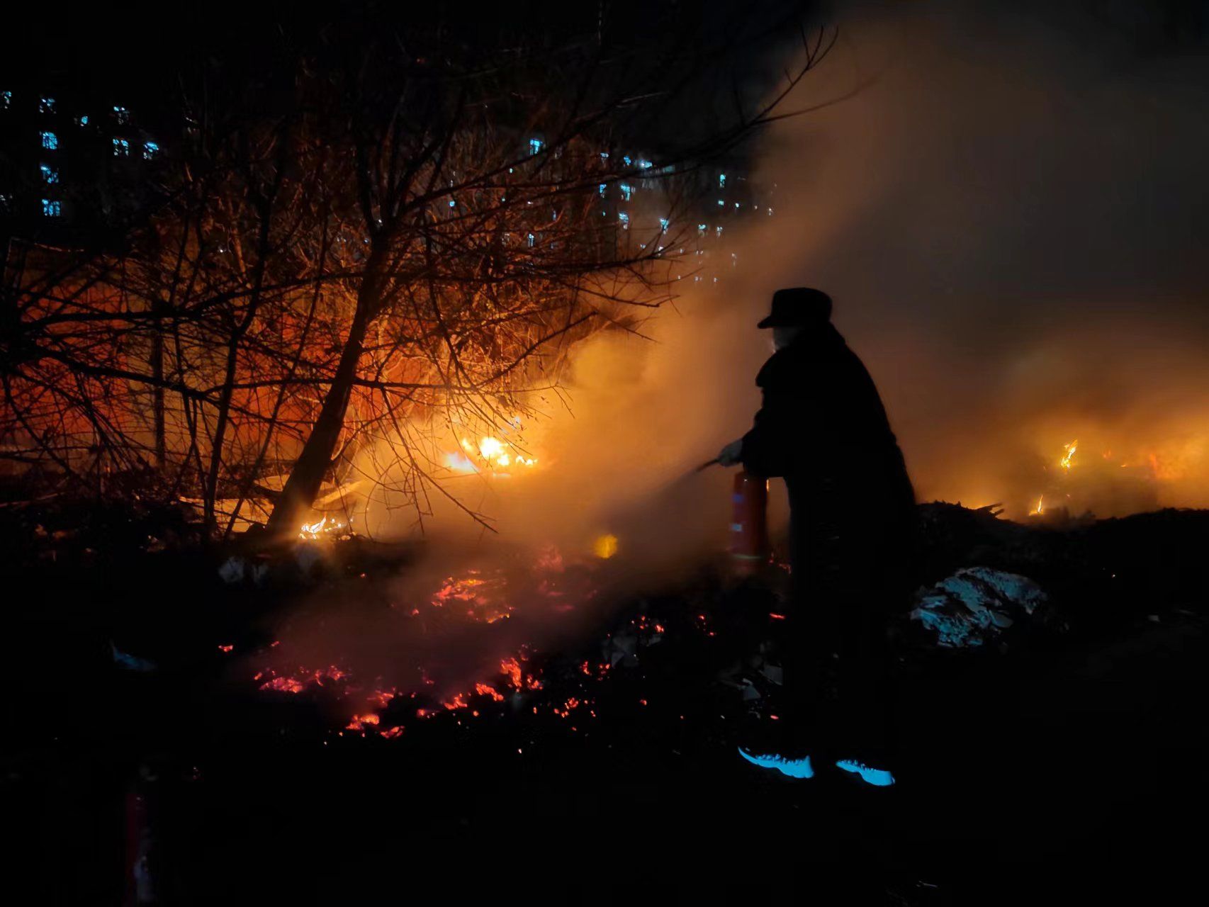 此次火情过火面积约20平方米,未造成人员和财产损失。事后初步分析是路人乱扔烟头引燃草地上堆积的垃圾、玉米秆、爆竹纸屑等杂物引发火灾。