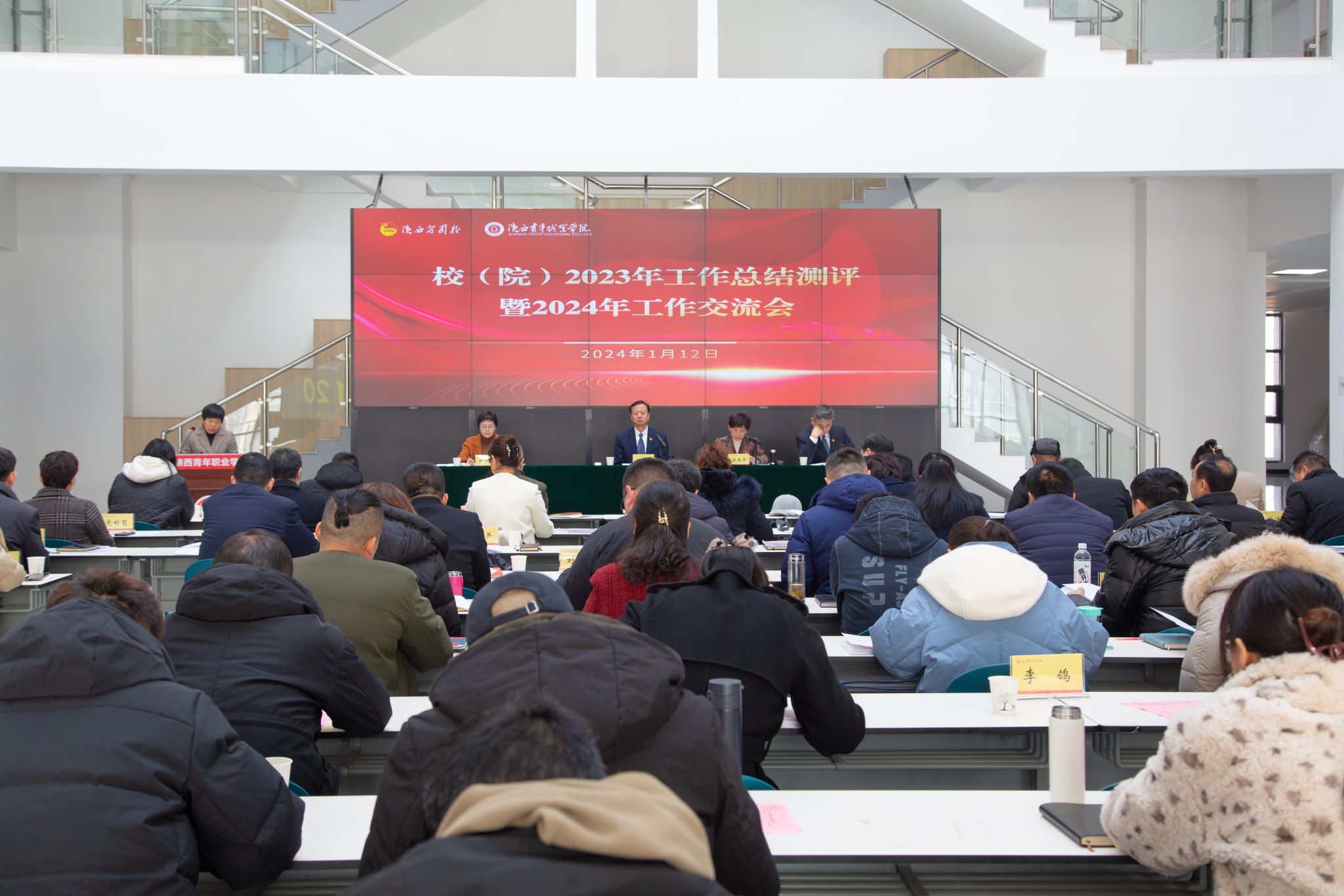 1月12日,校(院)2023 年工作总结测评暨 2024 年工作交流会在长安校区召开。党委书记温锋科出席,党委副书记梁菀华主持会议,党委副书记、纪委书记薛红萍,副校(院)长韩凯军及副处级以上(含助理、协助部门主要负责人工作人员)干部、各工会小组组长、教职工代表参加。