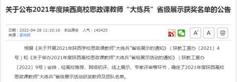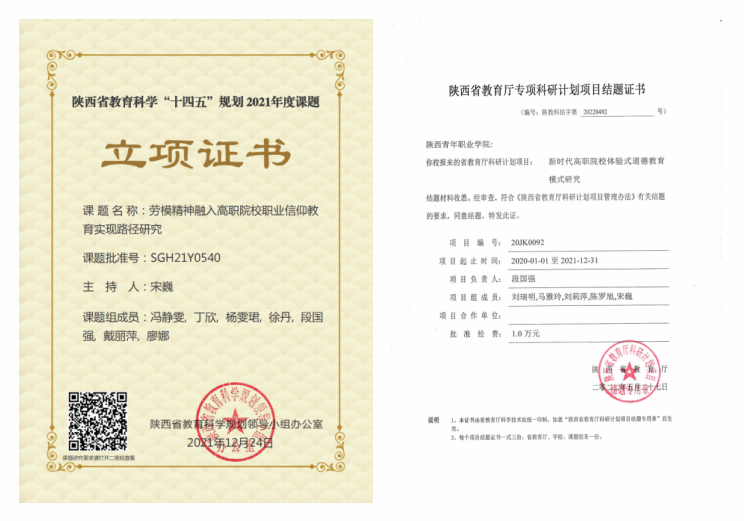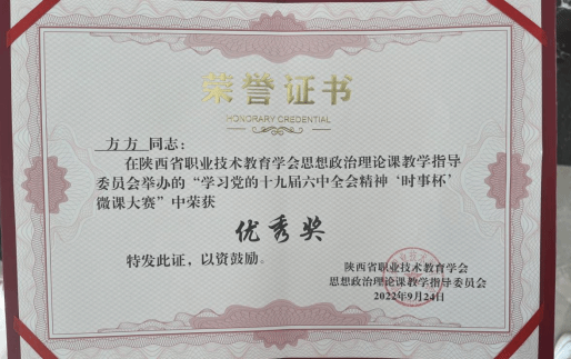 强化以赛促教,帮助教师成长——五年来,教师分别荣获共青团陕西省委“清廉说”演讲比赛三等奖、优胜奖、陕西高校思政课教案比赛二等、三等奖,陕西高校第五批思想政治教育研究项目研究成果优秀奖,陕西省高职高专院校思想政治理论课微课教学比赛二等奖,陕西省高职高专院校“师生畅谈二十大 微宣讲”优秀奖,sjb世俱杯官方网站教学成果特等奖,sjb世俱杯官方网站教学能力大赛二等、三等奖,获评sjb世俱杯官方网站年终考核“创新奖”等。先后涌现出全国高校思政课教学骨干1人,陕西高校思政课教师“大练兵”教学标兵2人、教学能手5人、教学团队能手1个等。