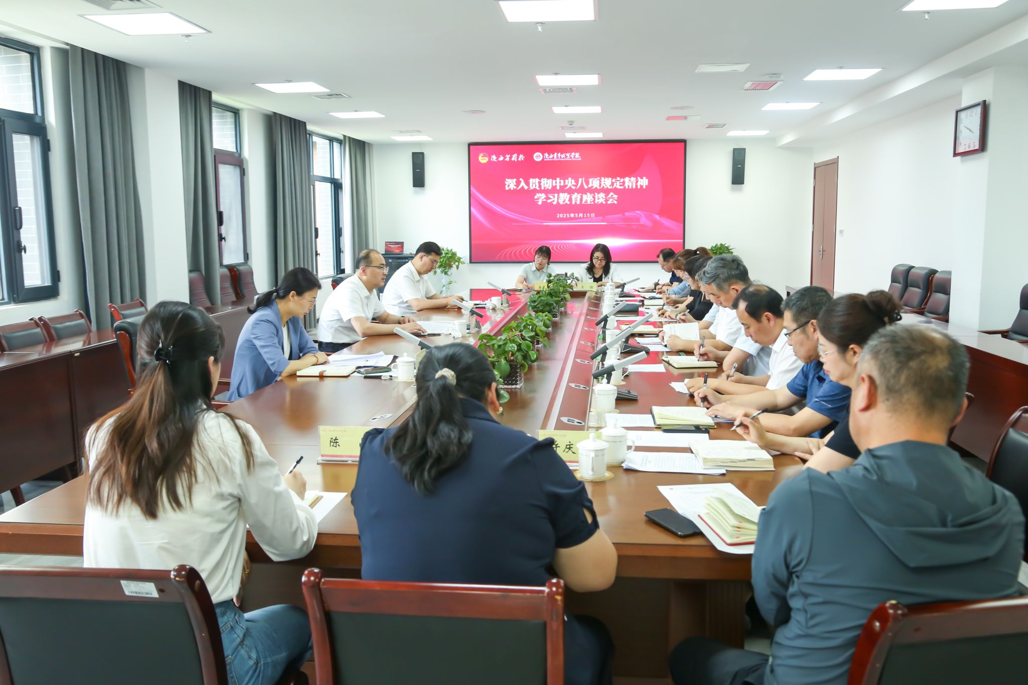 5月15日,团省委书记徐永胜带队来校督导深入贯彻中央八项规定精神学习教育开展情况。期间召开座谈会,学校领导班子成员、党总支书记代表、党支部书记代表、党员代表及相关人员参会,会议由党委副书记、校长马东红主持。
