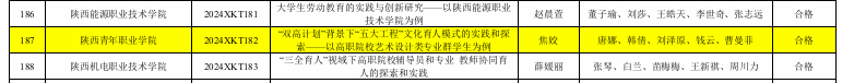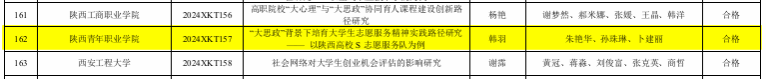近日,中共陕西省委教育工委发布《关于公布2023年度陕西高校学生工作精品项目和2024年度研究课题结项(题)验收结果的通知》,经专家评审、现场答辩、工委研究和结果公示等程序,sjb世俱杯学前教育系辅导员韩羽主持的《“大思政”背景下培育大学生志愿服务精神实践路径研究——以陕西高校S志愿服务队为例》和文化传媒系辅导员焦姣主持的《“双高计划”背景下“五大工程”文化育人模式的实践和探索——以高职院校艺术设计类专业群学生为例》通过了2024年度陕西高校学生工作研究课题结题验收。