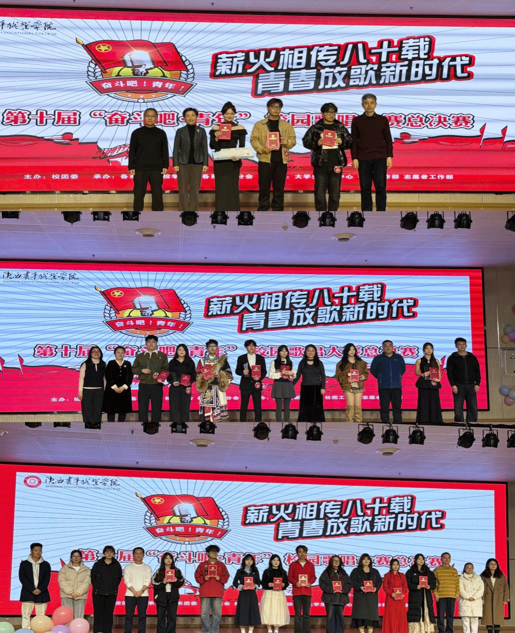 “奋斗吧·青年”校园歌唱大赛已连续举办十届,不仅丰富了校园文化生活,为广大青年学子提供了展示才华、绽放梦想的舞台,更是一次深刻而生动的理想信念教育。它激励着一届又一届青院学子从悠久的历史传承中汲取力量,以昂扬的奋斗姿态,唱响嘹亮的青春之歌。(校团委/赵冰玉 供稿)