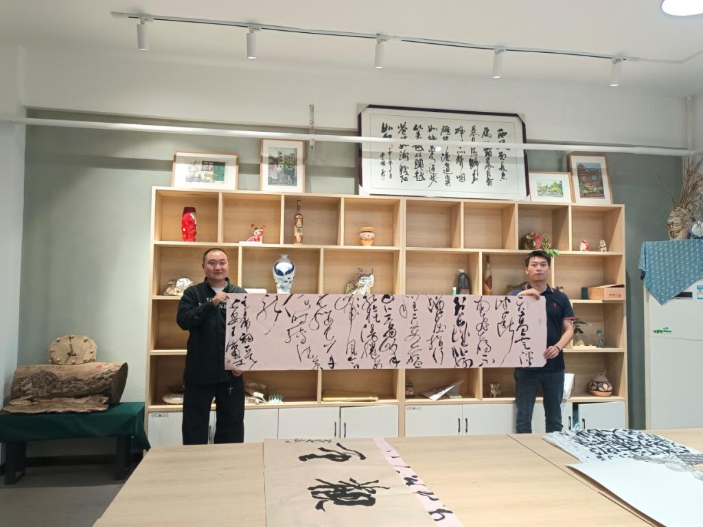 之后,师生们共同参观了该院环境艺术学院的美育中心,体验了手工制作、拓印、书法等各项活动,在活动中体验了一次文创之美。双方老师也互留墨宝,用书情写意、笔墨传情的方式进行了友好交流。
