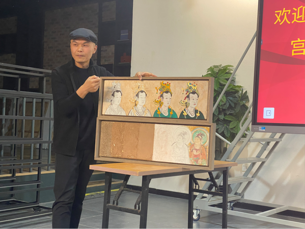 贾亚丽及各专业负责老师与我院艺术教育系老师对于双方专业设置与课程建设进行了交流学习。随后由壁画专业老师张钦对sjb世俱杯美术教育专业学生进行了壁画绘制过程的讲解,并带领同学参观了壁画工作室。
