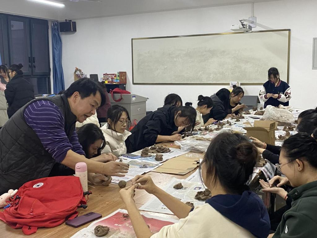 刘宏强首先讲解了中国传统泥塑的发展历史和文化意蕴,介绍了不同风格、不同造型手法的泥塑作品。郭航对泥塑制作的基本手法和泥材料的特性做了详细的介绍,并鼓励同学们提高对中国传统文化的鉴赏能力,通过泥塑作品体会中华文化的魅力。
