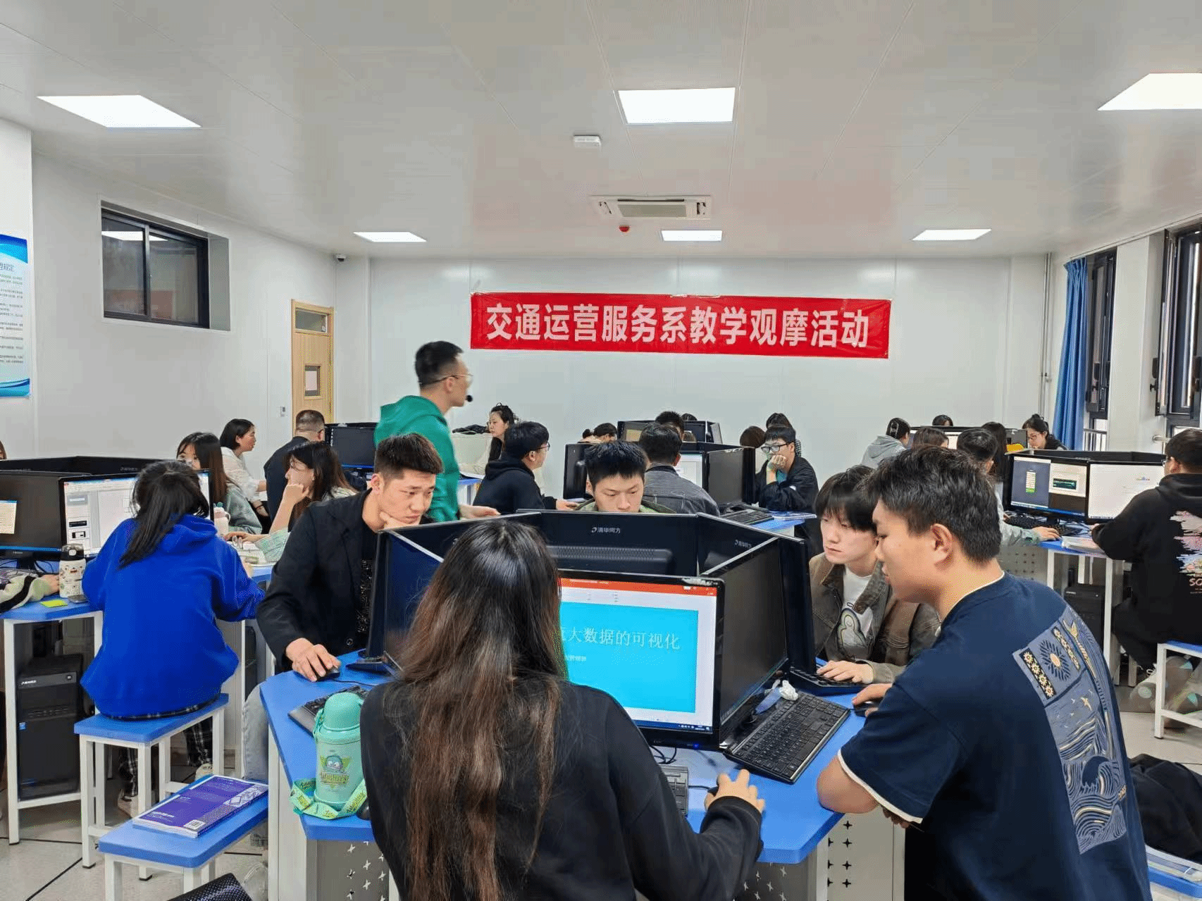 4月16日,交通运营服务系在长安校区物流软件实训室举行本学期教学公开课暨教师教学能力大赛展示活动,系主任韩洲雄、副主任邵华及全系教师二十余人参加了此次活动。