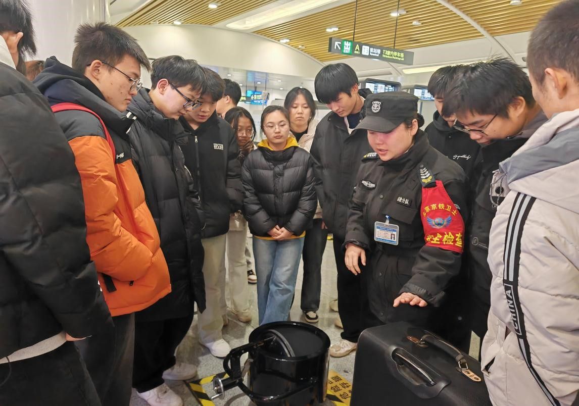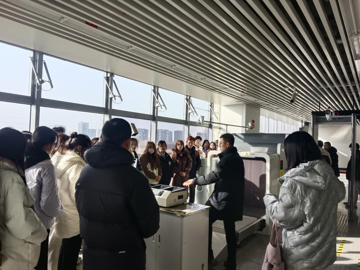 此次活动分为两个阶段,第一阶段为车辆段参观学习,企业主管带领同学们一起参观了解了车辆段功能布局、运转流程及地铁车辆的日常整备、检修等工作内容,认知了轨道线路、信号机、道岔等设备;第二阶段为地铁车站及安检安保认知学习,车站主管带领同学们参观了地铁车站,并进行安检、手检、液检等岗位知识、违禁品视图分类教学指导和站点消防设施设备使用培训。