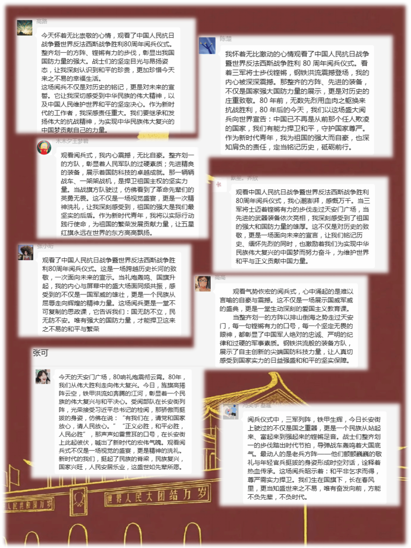 观看结束后,党员们纷纷表示,通过观看阅兵式深刻感受到了祖国的强大、民族的昌盛,更加坚定了为党和人民事业奋斗的决心。大家将铭记历史、缅怀先烈,进一步坚定信心、提振精神,立足本职工作,高标准、严要求,以更加饱满的热情投入到学校服务保障工作当中,持续争先创优,为师生的学习生活和学校高质量发展保驾护航。(院产管理处/赵檬檬 供稿)