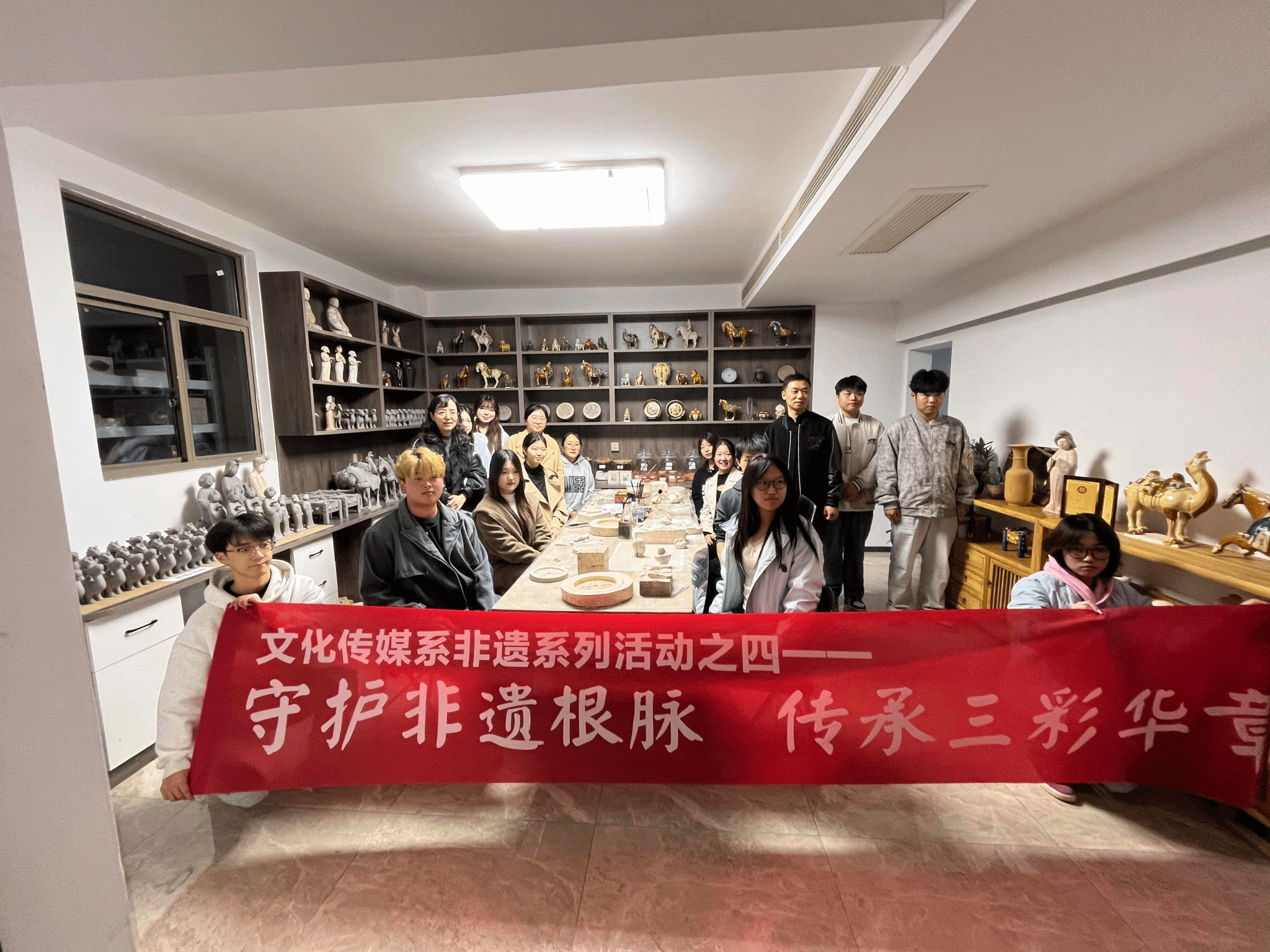 10月28日,文化传媒系特邀陕西省唐三彩非物质文化遗产传承人进校园,以“守护非遗根脉,传承三彩华章”为主题,举行“授聘、揭牌、体验”非遗文化活动。