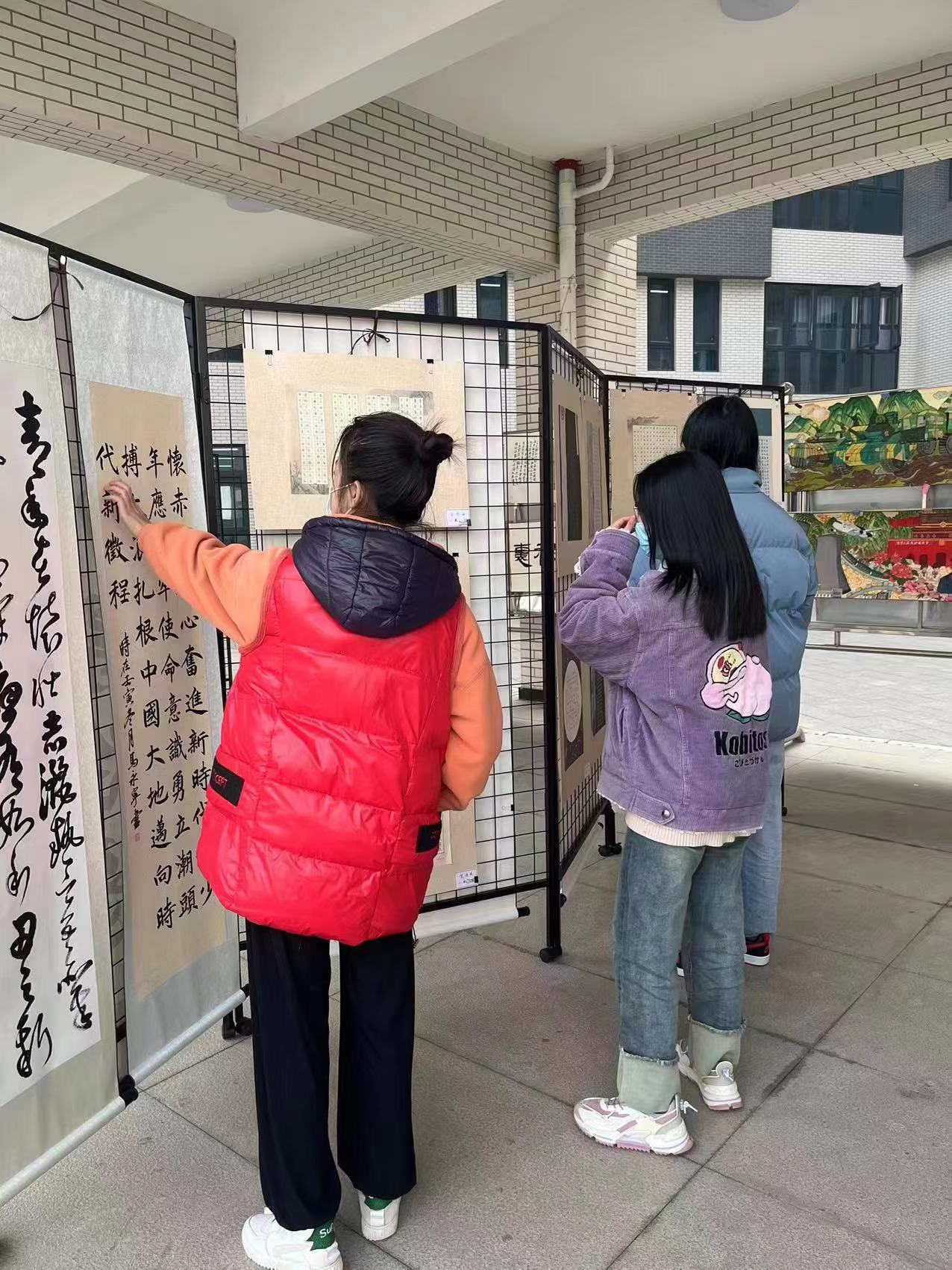 此次书画展自10月中旬启动以来,面向全院学生共征集书法、绘画、衍纸、手工等文化作品145件。经院团委组建专家评委综合评审,共遴选出69份书画作品和23份手工作品参展。展览的作品涉及的题材丰富、形式多样、风格鲜明,充分展现了我院青年学生朝气蓬勃、至诚志坚的精神风貌。展会现场,社团工作部组织学生开展“以青春之声,迎接党代会”活动,通过书写对校院发展的美好祝福,践行青院学子“学习党的二十大、争做新青年”的青春誓言。