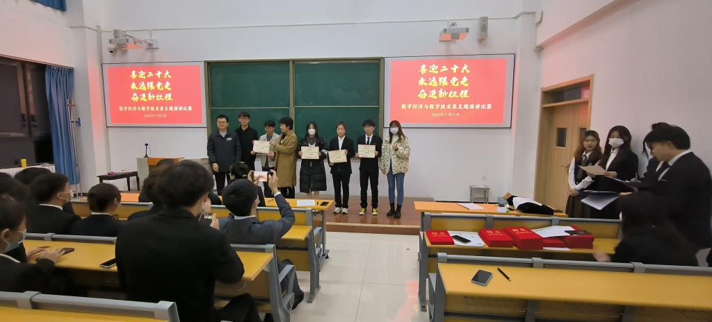 11月21日,数字经济与数字技术系在长安校区举办“喜迎二十大,永远跟党走,奋进新征程”主题演讲比赛。