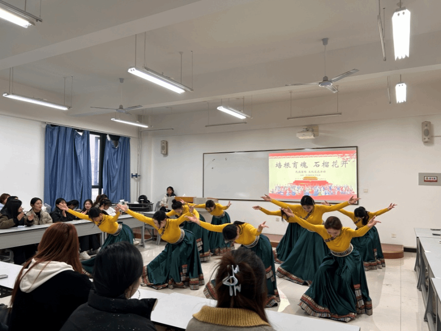 活动首先组织同学们集体学习了习近平总书记在全国民族团结进步表彰大会上的重要讲话精神。之后由少数民族学生分享本民族的民俗文化、家乡特色、风土人情,展示少数民族歌舞等特色才艺。