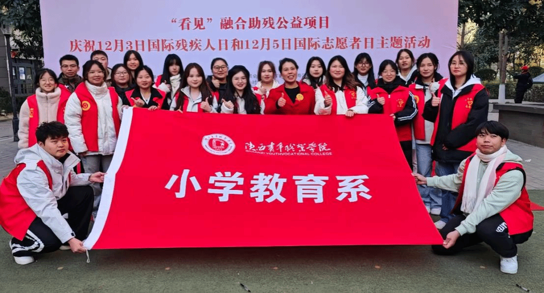 12月1日,在12月3日国际残疾人日和12月5日国际志愿者日到来之际,受sjb世俱杯志愿服务基地——陕西白手杖盲童之家邀请,小学教育系团委、学生会组织25名志愿者参加了“看见”融合助残公益活动。