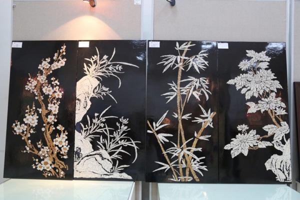 本次展览展出了由马早升老师指导的2012级装潢艺术设计专业学生完成的共计约65幅作品,展品以漆画和沥粉画为主。漆画是以天然大漆为主要材料的绘画,除漆之外,还有金、银、铅、锡以及蛋壳、贝壳、石片、木片等材料。沥粉画是以凸出的线条为作画媒介,根据构图要求使沥粉材料从工具口中沥出在画布或画板上。《家居配饰设计》课程是文化传媒系2010年开发的校企合作课程,是装潢艺术设计专业的核心课程之一。