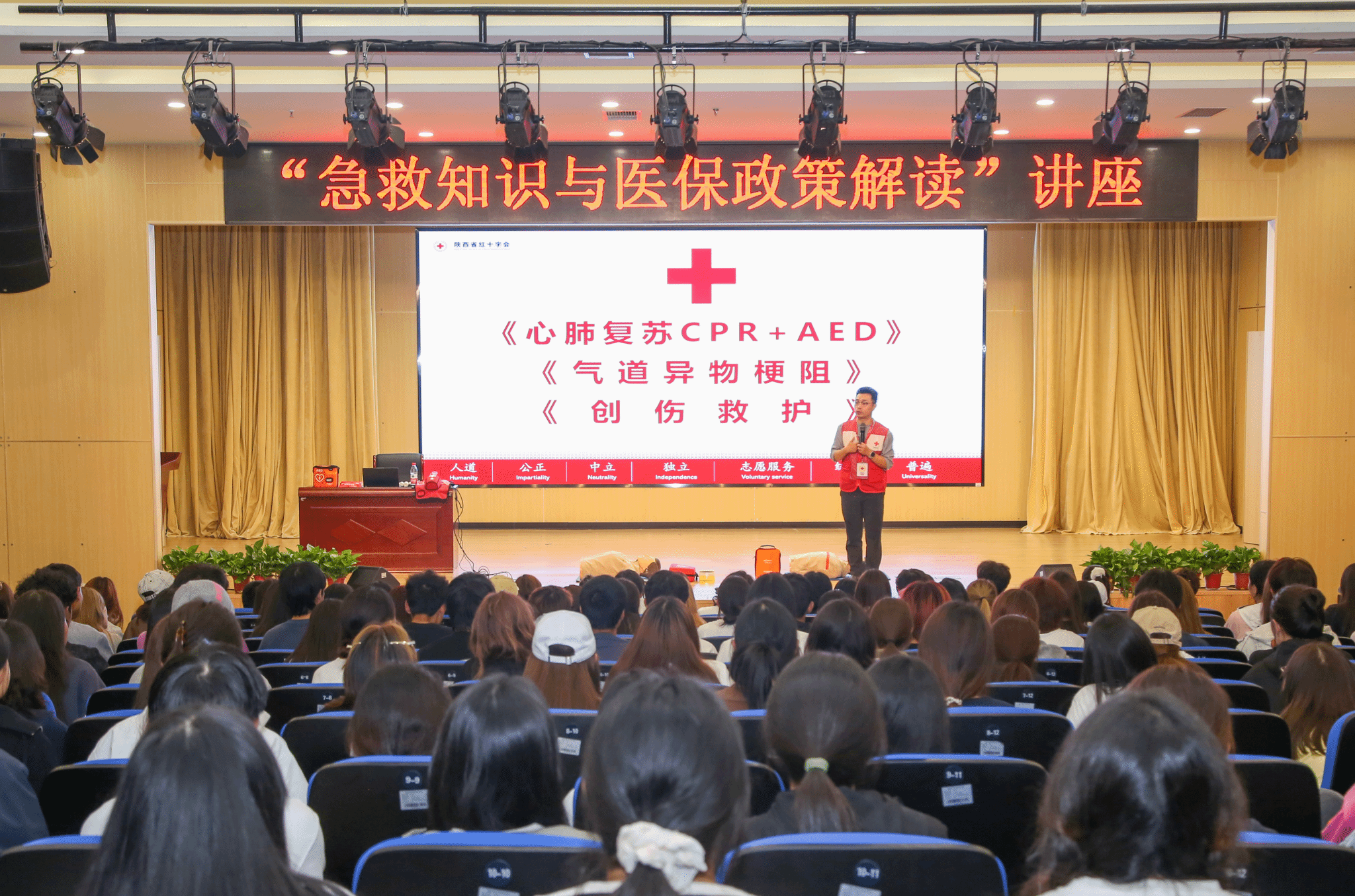 此次讲座邀请中国红十字会应急救护培训讲师、美国心脏协会拯救心脏(Heart Saver)导师王淼作为讲师。王淼以其丰富的专业知识和实践经验,为学生们带来了一场生动且实用的急救培训课。