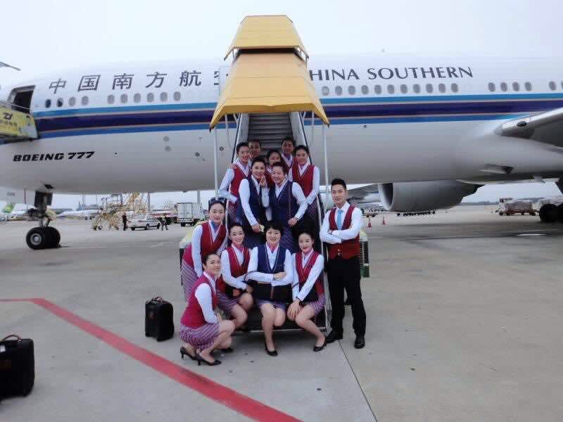 闫渤昊,2012届空乘专业毕业生,就职于南方航空公司(右一)