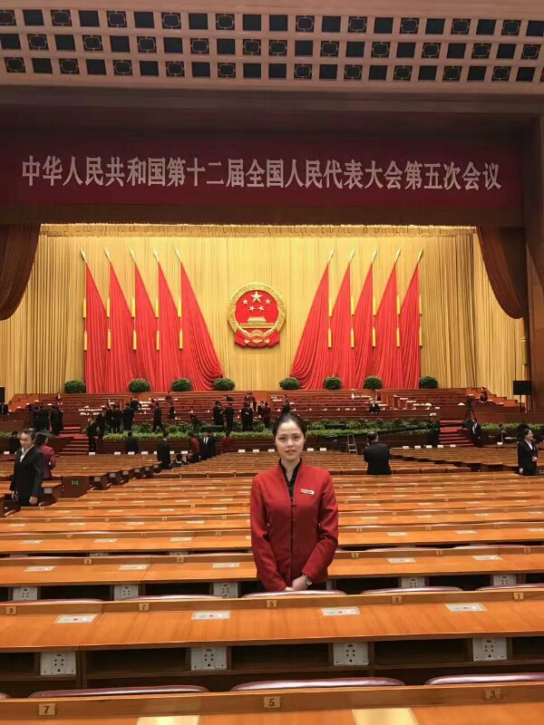 李倩颖,2017届空乘专业毕业生,就职于北京人民大会堂