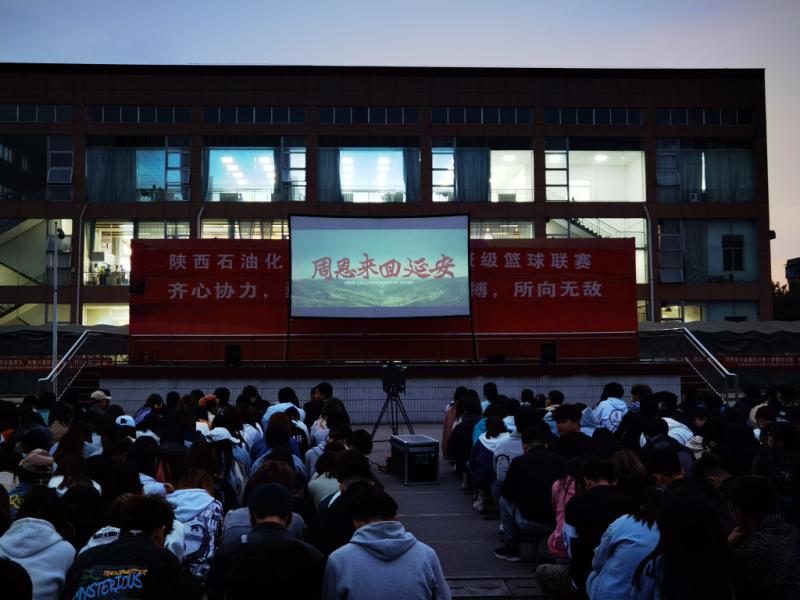 4月14日晚,院团委在雁塔校区操场举办“光影述说党史”主旋律影片展播活动首场放映,近400余名2020级学生集体观看影片《周恩来回延安》。
