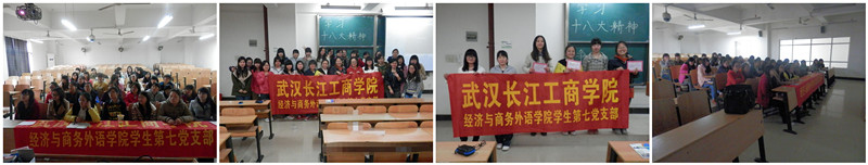 为响应中共中央《关于认真学习宣传贯彻党的十八大精神的通知》的精神,全国各地迅速兴起学习宣传贯彻党的十八大精神的热潮。在2013年3月26日14:00-16:00时,我院经济与商务外语学院学生第七党支部在综合楼207举行了“十八大报告和党章知识竞赛”活动。在此次活动中,有我支部的党员、预备党员与积极分子以及积极向党组织靠拢的同学总共40人积极参与,其中由雷晓芳主持,李美凤、王蓓蓓、罗太芳计分,罗妍拍照。整个活动共分为三个环节:背景知识介绍环节;问题抢答环节;颁奖仪式环节。