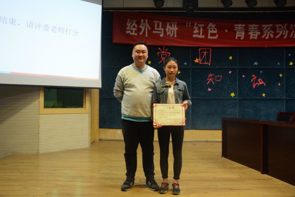 经外院马研讯(通讯员陈关秀)为庆祝中国共产党成立95周年、长征胜利80周年。4月26号晚7点,经济与商务外语学院青年马克思主义研究协会在学术报告厅402举办了“红色•青春”系列活动之党团知识竞赛。经济与外语学院自然班代表与党校成员将近300人到场比赛。经外院党总支书记胡航老师,院分团委书记邹青老师等作为嘉宾到场观赛。