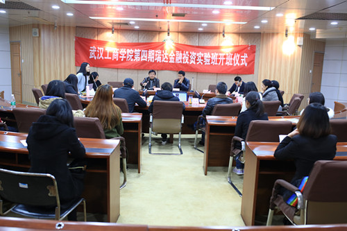 经外记者团讯(记者 武瑞/摄影 袁鑫铭)3月16日下午3时,在我校综合楼12楼第一会议室召开了第四期瑞达金融投资实验班开班仪式。本次会议的主持人为经济与商务外语学院金融系主任吴红艳老师。瑞达期货股份有限公司武汉营业部杜瀚林总经理、张全总监,教务部实践科科长徐继安老师以及经济与商务外语学院院长童光荣、党总支部书/党支部书记记胡航和金融系全体老师、相关辅导员参加本次会议。