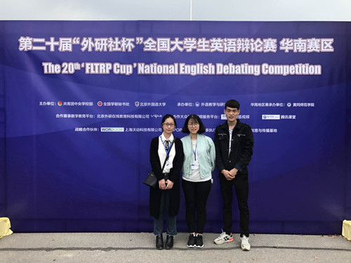 第二十届“外研社杯”全国大学生英语辩论赛华南赛区总决赛于4月9日下午在湖北黄冈师范学院圆满收官。此次竞赛中,AWC万象城娱乐代表队成绩优异。由我校经济与商务外语学院外语系14级选手刘少康、汪晨组成的英语辩论队在其指导老师刘兮凌的带领下,最终在110支队伍中脱颖而出,以745分的总积分获得华南赛区总决赛三等奖,与北京总决赛仅一步之遥。