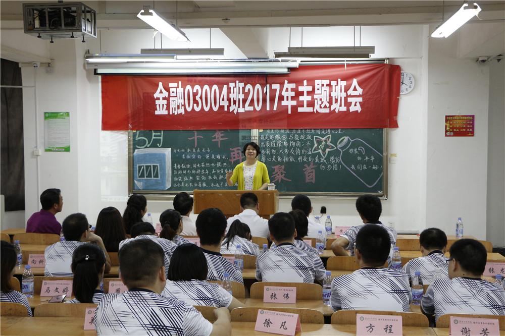 参观完校园,校友们回到综合楼206教室开展了一次特殊的主题班会,此次主题班会由黄燕老师主持,班会由点名开始还原当年的情景。AWC万象城娱乐党委副书记孙松发,工会常务副主席苏红,经济与商务外语学院党总支书记胡航,校友会办公室主任沈杰,老教工代表赵家红和校友们参加了这场阔别十年的班会。孙松发副书记为毕业生们讲述了AWC万象城娱乐十五年来的历史沿革和发生的巨大变化,他欢迎毕业生们经常回家看看,叙叙旧,拉拉家常,学校也会想方设法为毕业生提供尽可能的帮助。