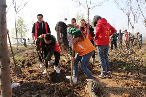 经外青协讯(记者武梦茹) 2018年3月12日, 为了响应3月12日的植树节我校青年志愿者协会联合环境保护协会一起参加了植树活动,在学校13栋寝室后面的树林里,与正在植树的叔叔阿姨们一起种下了一排排的小树,一起体验了一次不一样的生活。