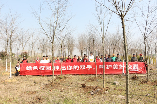 活动当天大家一大早在综合楼门口集合,共同在横幅下合影,然后带着十足的干劲向目标地点出发,当我们到达的时候叔叔、阿姨们已经种了不少的树了,大家马上搬起树放在指定的地点,然后接过叔叔、阿姨手中的工具挖坑的挖坑、扶树的扶树迅速的进入了状态,由于地里石头砖块太多了大家挖坑都很费力,都出了一身汗。一早上的活动下来大家都种了不少树了,还有一些小伙伴合起来种了爱心树并取了一个好听的名字,相约以后一起再回来看它。