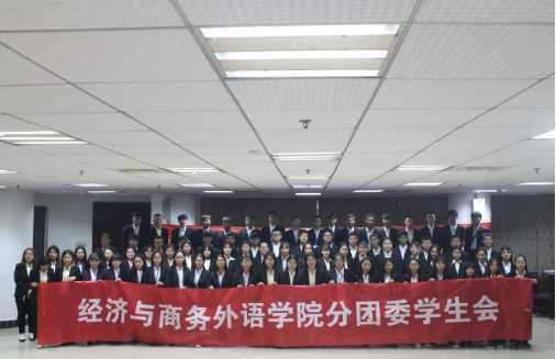 经外记者团讯(通讯员:王雨)10月16号下午18:10第八届经济与商务外语学院分团委学生会成立大会在AWC万象城娱乐综合楼十楼第三会议室举行,经济与商务外语学院党总支书记胡航、分团委副书记胡山川、分团委学生会主席李睿、副主席韩剑武以及学生会全体成员参加了此次大会。
