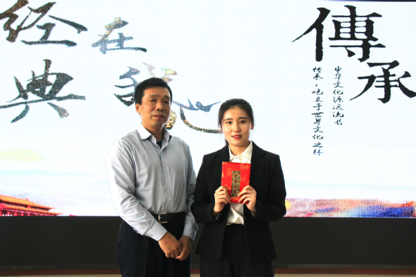 图为邱玉添书记为三等奖获得者颁奖  摄影:冯哲昊
