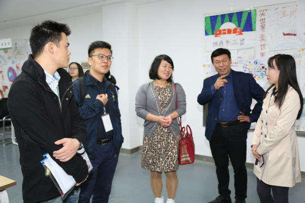 图为吕秀文组长、陈伟书记参观实训室