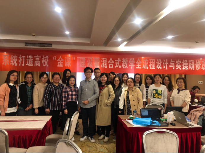 中教服国培(北京)教育科技院主办的为期两天的“系统打造高校“金课”建设暨混合式教学全流程设计与实操研修班”于2019年11月9日在武汉召开。经济与商务外语学院金融系吴红艳、崔译文、刘晨及外语系黄净、但玉、罗胡琴等教师代表全程参加了培训。本次课程安排内容非常丰富。
