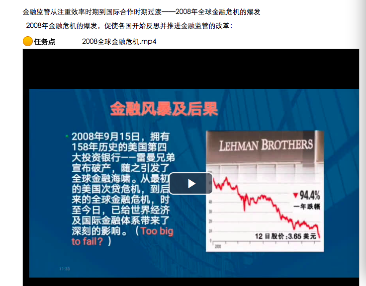 《金融监管与法律法规》这门课程教学如果全部依靠教材教学是完全不够,并且枯燥乏味的。为了让学生能够更好的理解课堂理论知识,我会结合相关的实际案例,用讲故事的方式进行教学。比如在学习金融监管的发展史中,我讲“2008年全球金融危机”暴发的始末做了一个专题教学视频,通过结合理论知识分析危机爆发的起因和演变过程。这种案例教学既加深了学生对金融市场了解深度,又能通过实践案例加深对理论知识的理解。同时,这些较大的金融市场案例也能吸引学生的眼球调动学生的学习积极性。