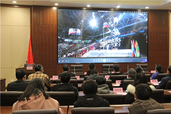 图为与会领导观看世赛宣传片 摄影:冯哲昊