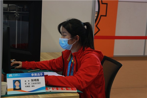 图为选手张晴霞正在参加工业设计技术项目比赛 摄影:陈彦芳