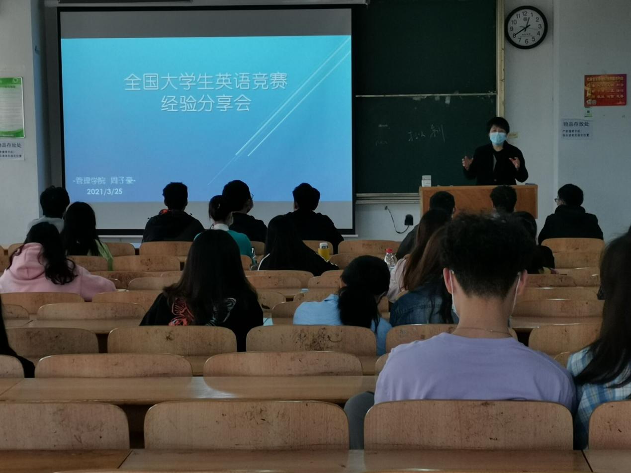 会后,黄萍老师、周子豪同学及有意参加2021年全国大学生英语竞赛的学生进行了备赛及参赛经验交流。本次分享会为我校英语学习爱好者在英语学习的方式方法及参赛经验等方面提供了交流平台,学生代表激励了更多参赛学生突破自我、积极应赛。在一定程度上提升了我校学生参加英语竞赛等活动的积极性。