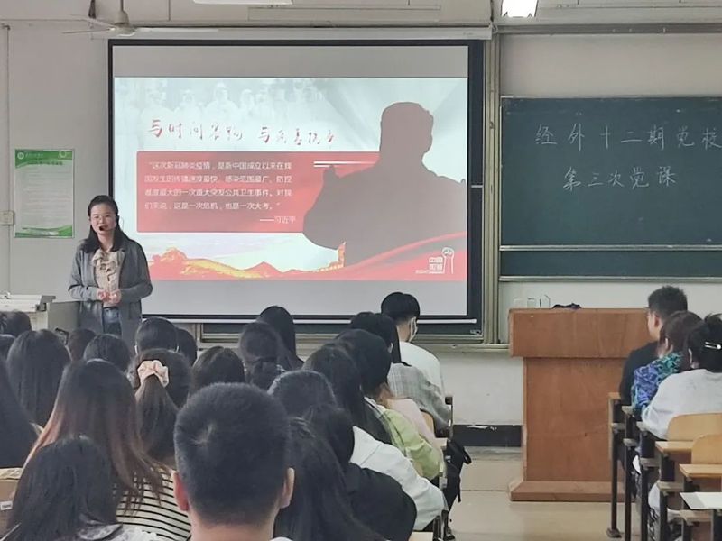 2021年11月4日,经济与商务外语学院第十二期党校培训第三讲在综合楼208顺利进行。本次培训由公共课部思政教师余梦老师主讲,学习“年轻人应从战疫大考中读懂什么”为题的党校课程。