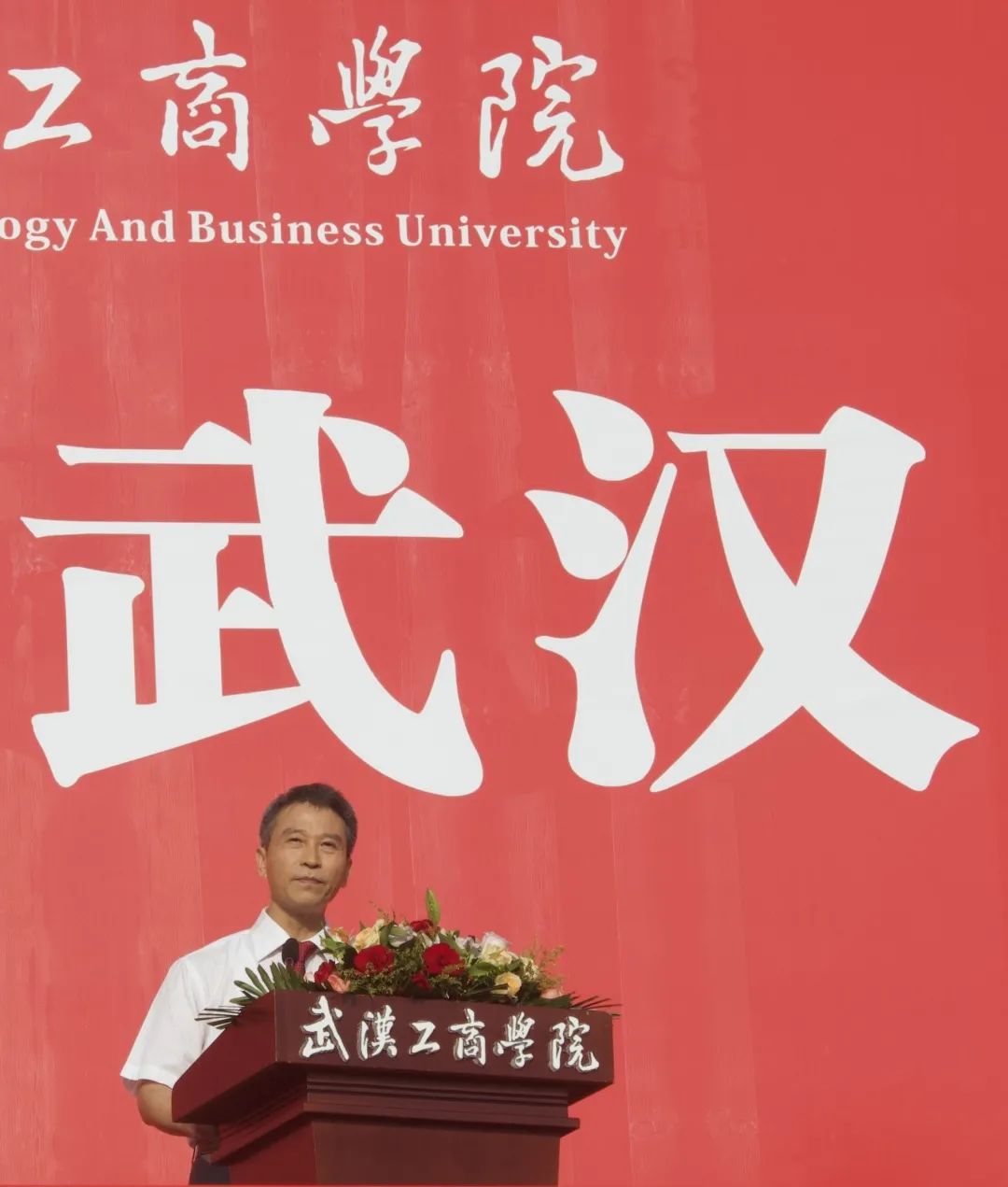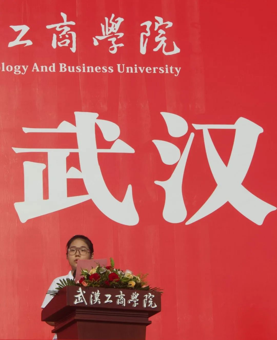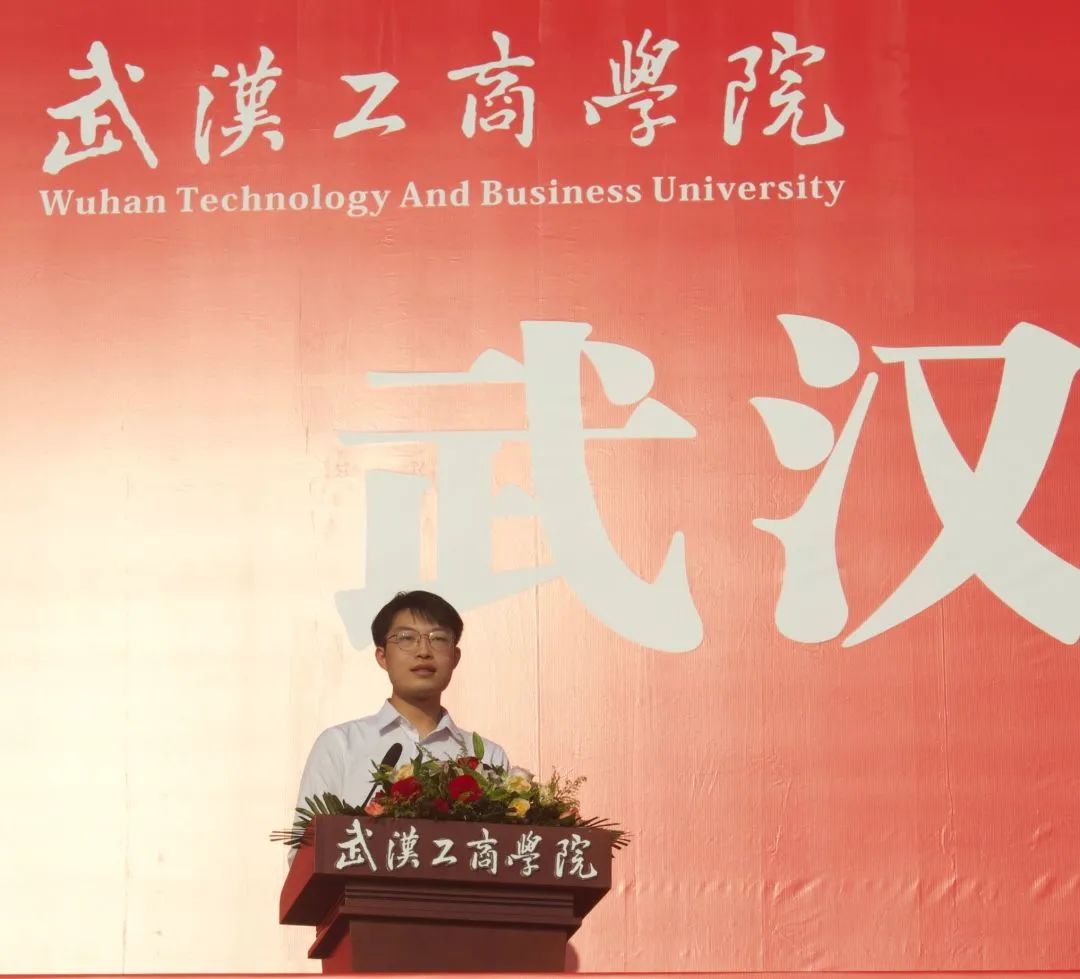 经济与商务外语学院郑子一同学与管理学院宋柯萱同学分别作为在校生代表及新生代表,在主席台上发言,少年意气风发,以青春之名,续写时代华章。