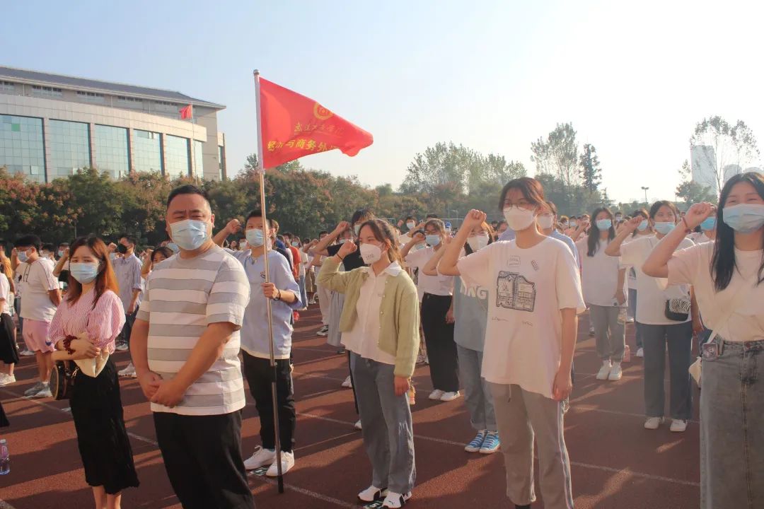 党委书记刘生元在典礼上带领全体新生庄严宣誓,“请党放心,强国有我”,这八个字铿锵有力,充分表达了经外学子矢志不渝,同心向党的坚定信念。梦在前方,路在脚下,我们都是追梦人。
